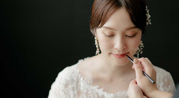 2時間かけて希望のヘアメイクをばっちり叶えるスタイリスト。