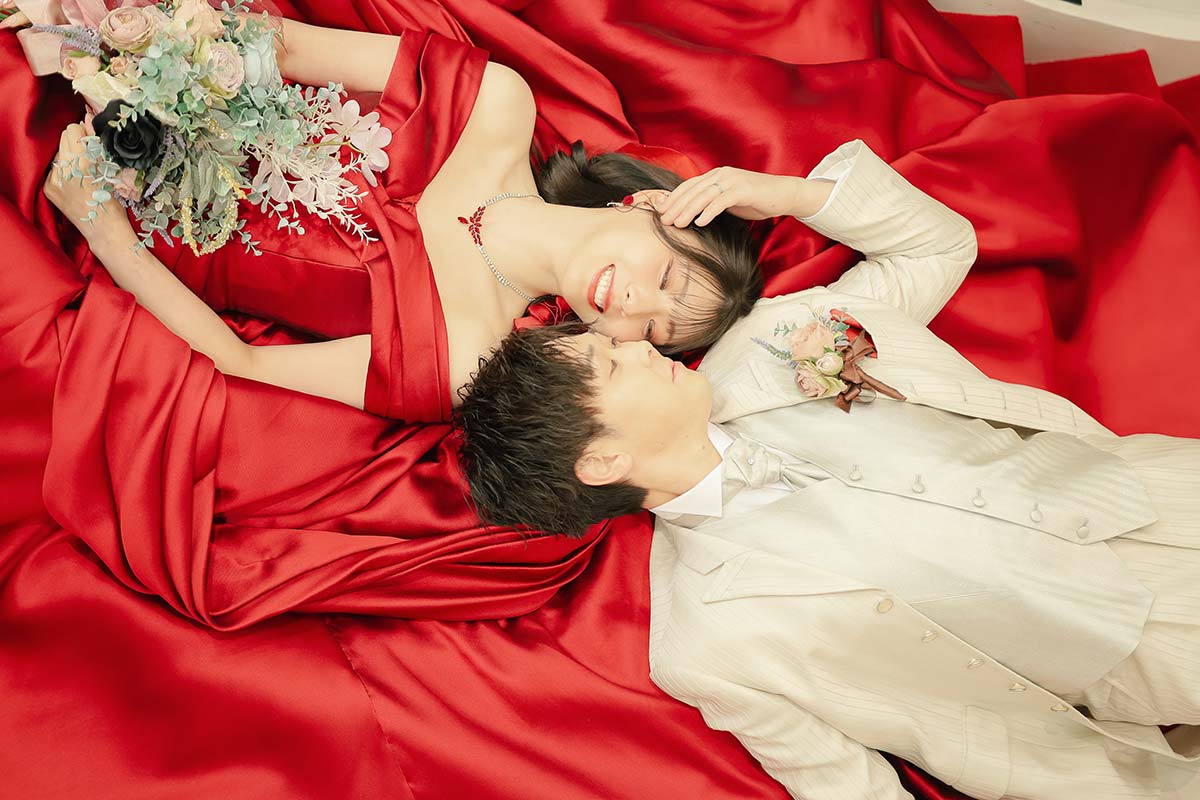 ウェディングドレスはフワフワした感じ、カラードレスはサテンでツヤツヤした感じにしてどちらも楽しめました カラードレスの色をどうするか悩みましたが、スタッフの方がウェディングフォトと結婚式の違い、肉眼とカメラの見え方の違いなど教えていただき素敵なドレスを選ぶことができました。