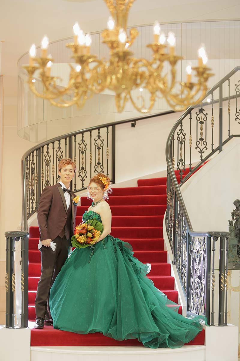 何度も試着させて頂いて一緒に考えてくれました。結局コーディネーターさんが最初に選んでくれた白ドレス、カラーは今日決めないとアウト!という日にたまたま戻ってきていた緑のドレスにすぐ決まって、ほんとに良かったです。