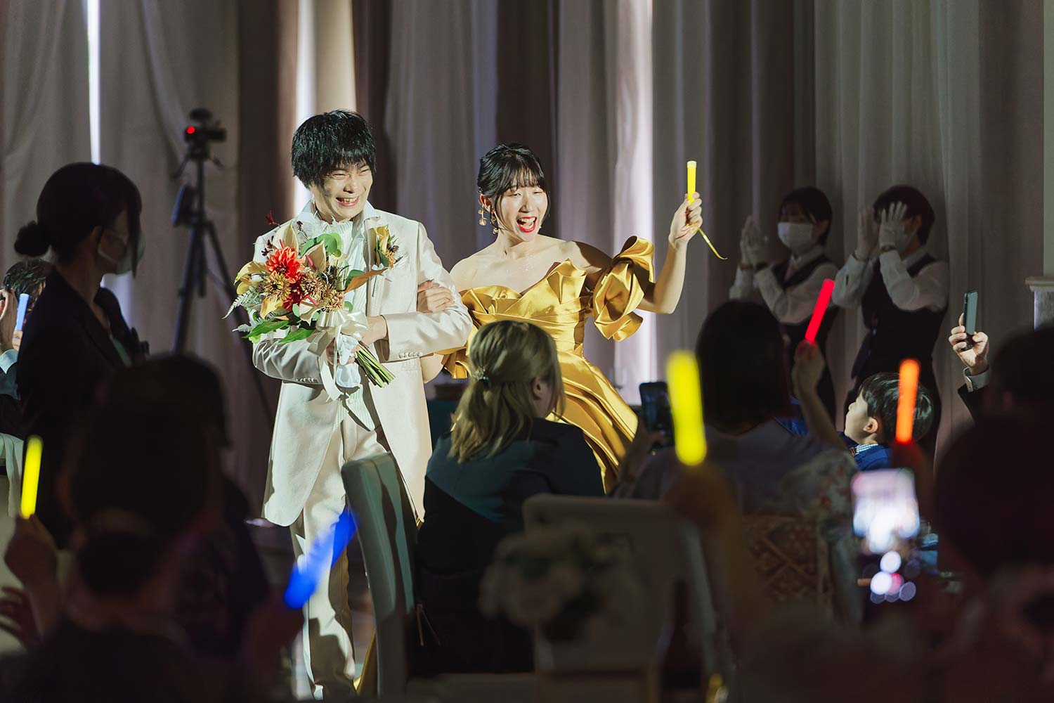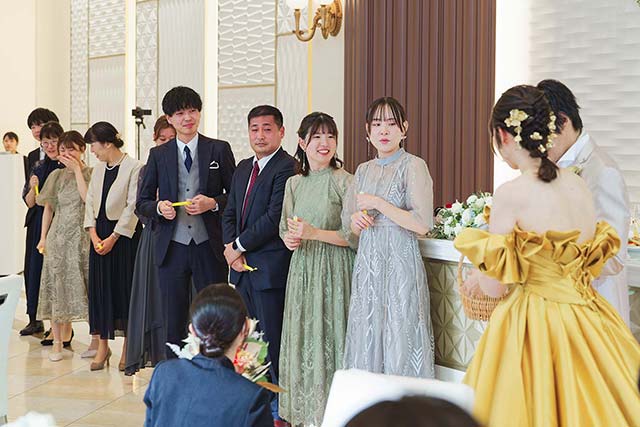 新婦のお色直しのドレス色当てクイズをやったのですが、みんな真剣に悩んでくれて、再入場が盛り上がったのでやって良かったです。サイリウムを選ぶ形にしたのも、一目で誰が当てたか分かりましたし、キラキラ光っていて綺麗だったので、良い選択だったと思います!