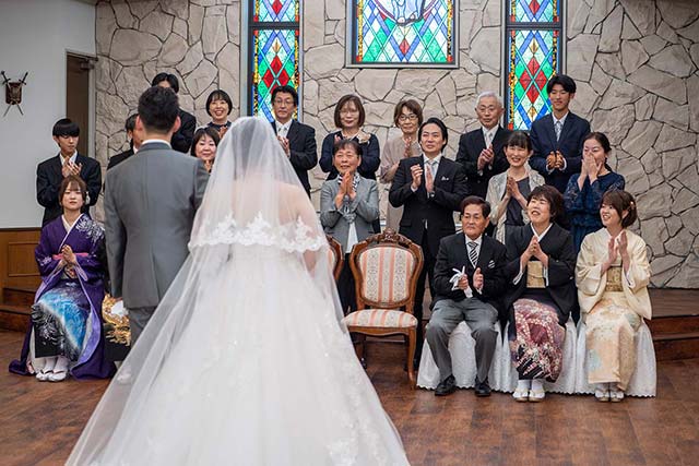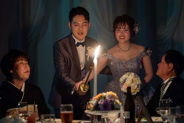 キャンドルサービスです。 当日は思った以上にゲストと歓談するタイミングがなく、このタイミングで一人一人に挨拶し、写真が撮れたのは良かったなと思います。